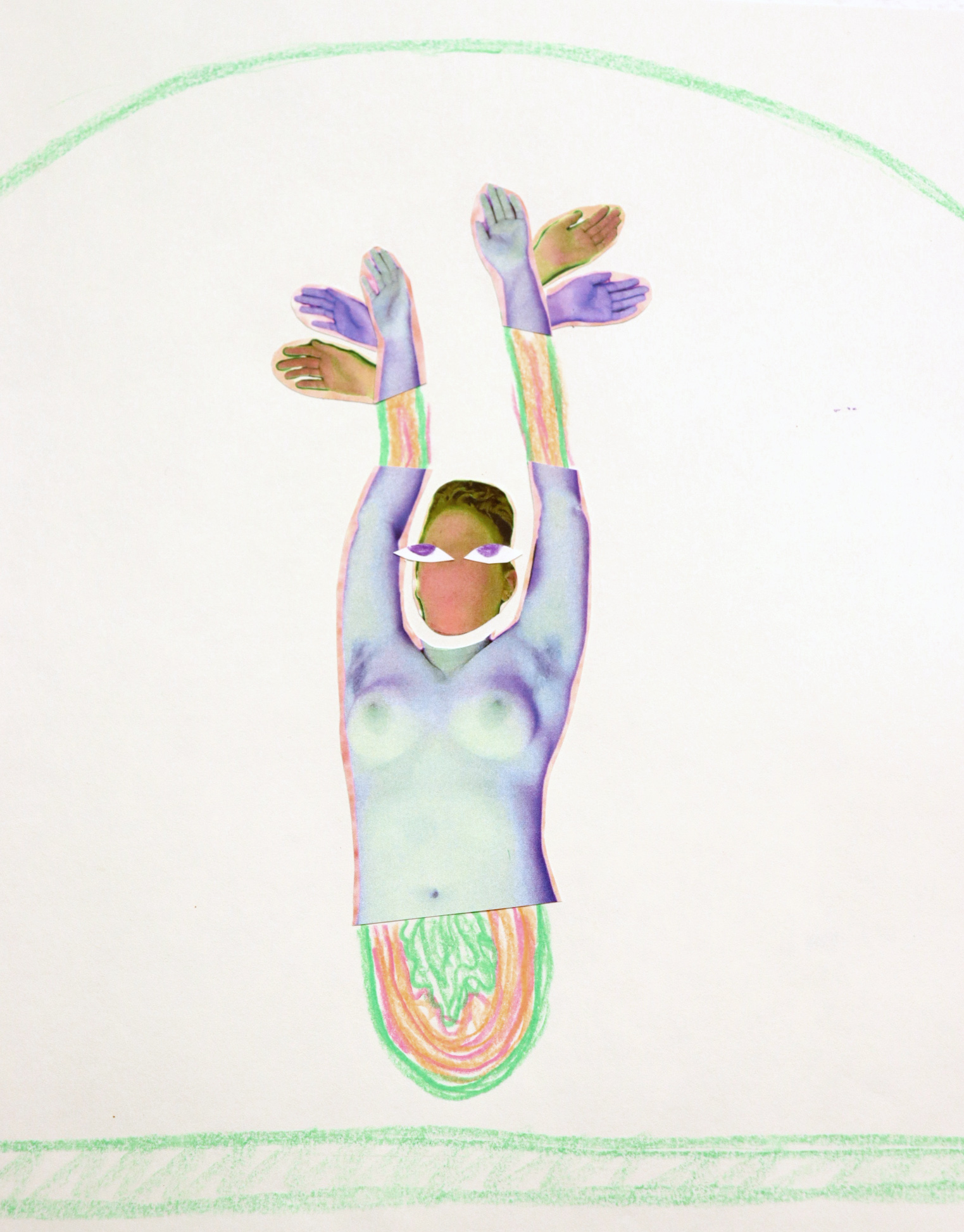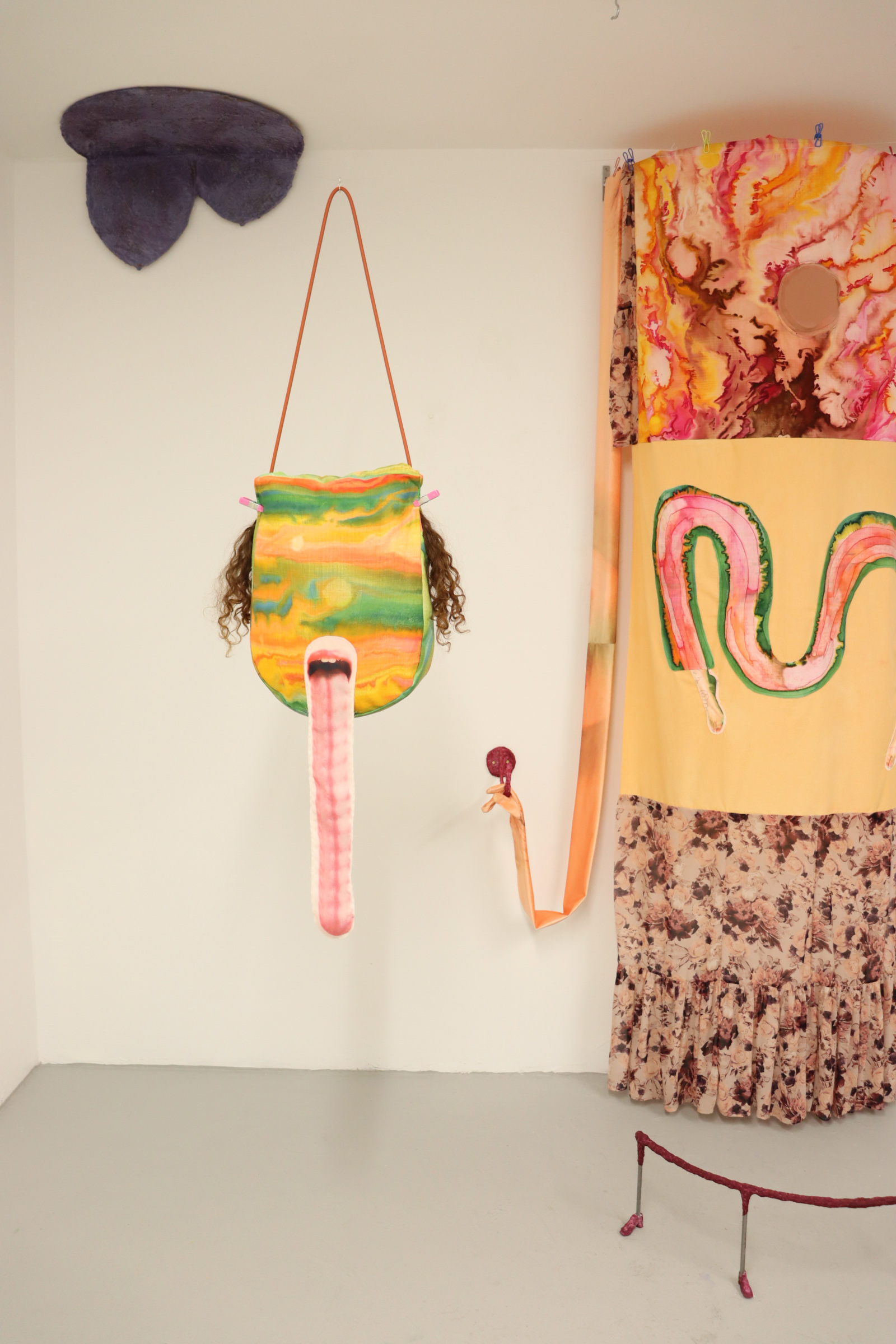 Cat Bowyer (b.1988, Indiana) is an interdisciplinary artist living and working in Chicago, IL. They create works across mediums from illustrative narratives on cloth and paper to femme-tastical objects in metal and sculpture. They use experimental dye and print methods alongside collage and assemblage creating queer clues into another world. Bowyer received their BA in Studio Art and Visual Art Education with a minor in Art History from Purdue University. In 2022, Bowyer secured their first solo exhibition, following a residency at Baby Blue Gallery in Chicago.