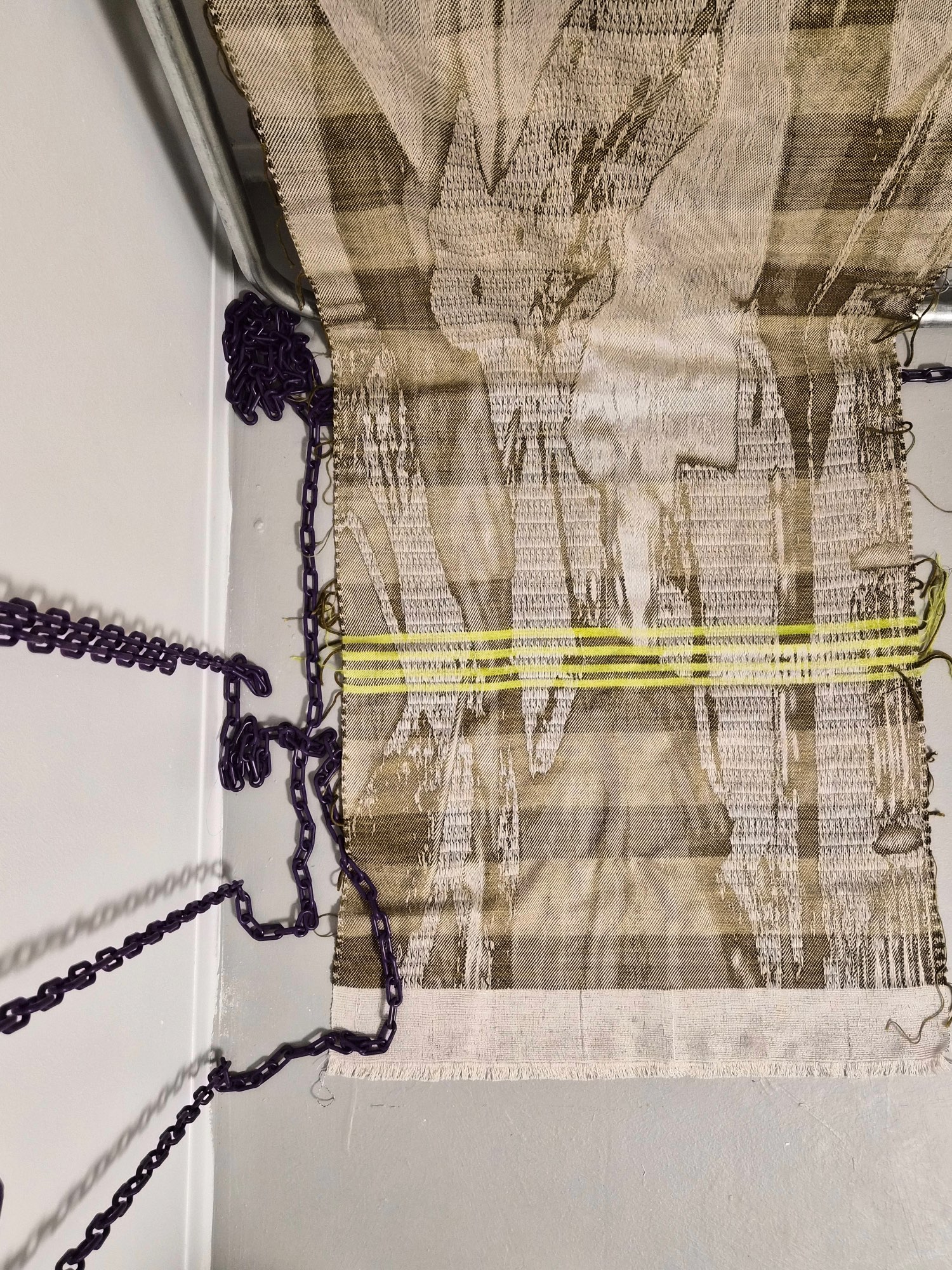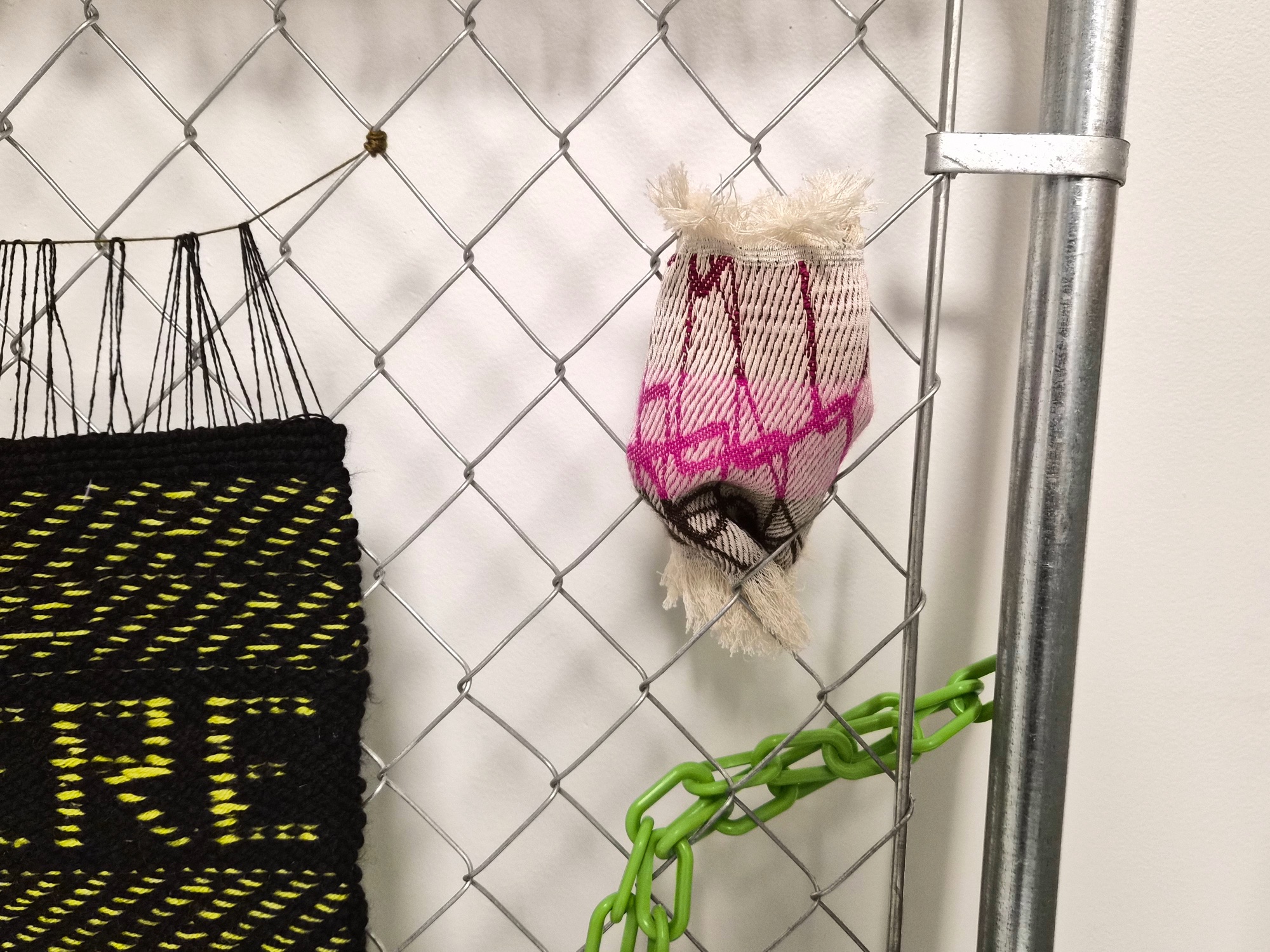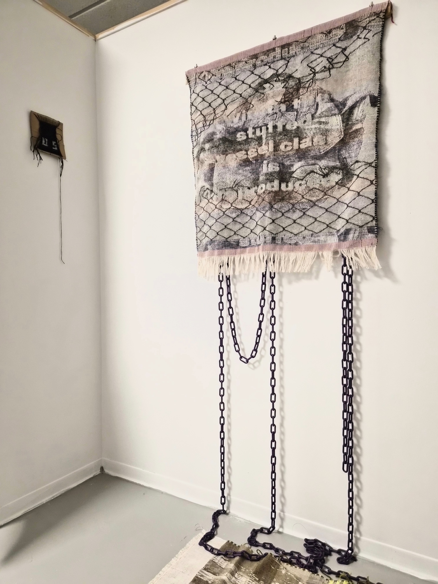 Rebekah Villacorta is a multidisciplinary Los Angeles and Chicago based Salvadoran American artist. They studied at the University of California Irvine with a focus in writing, performance, and photography. Villacorta’s practice manifests as installation, text, sculpture, photo, painting, and weaving to question the dysfunction and futility of unifying language that plagues Western dialogues of our collective future. Most recently, Villacorta’s practice has focused on the role of narration, timing, and ‘epigenetic archiving’ by activating domestic ephemera and Salvadoran oral histories by engaging autistic emotional memory as sculpture.