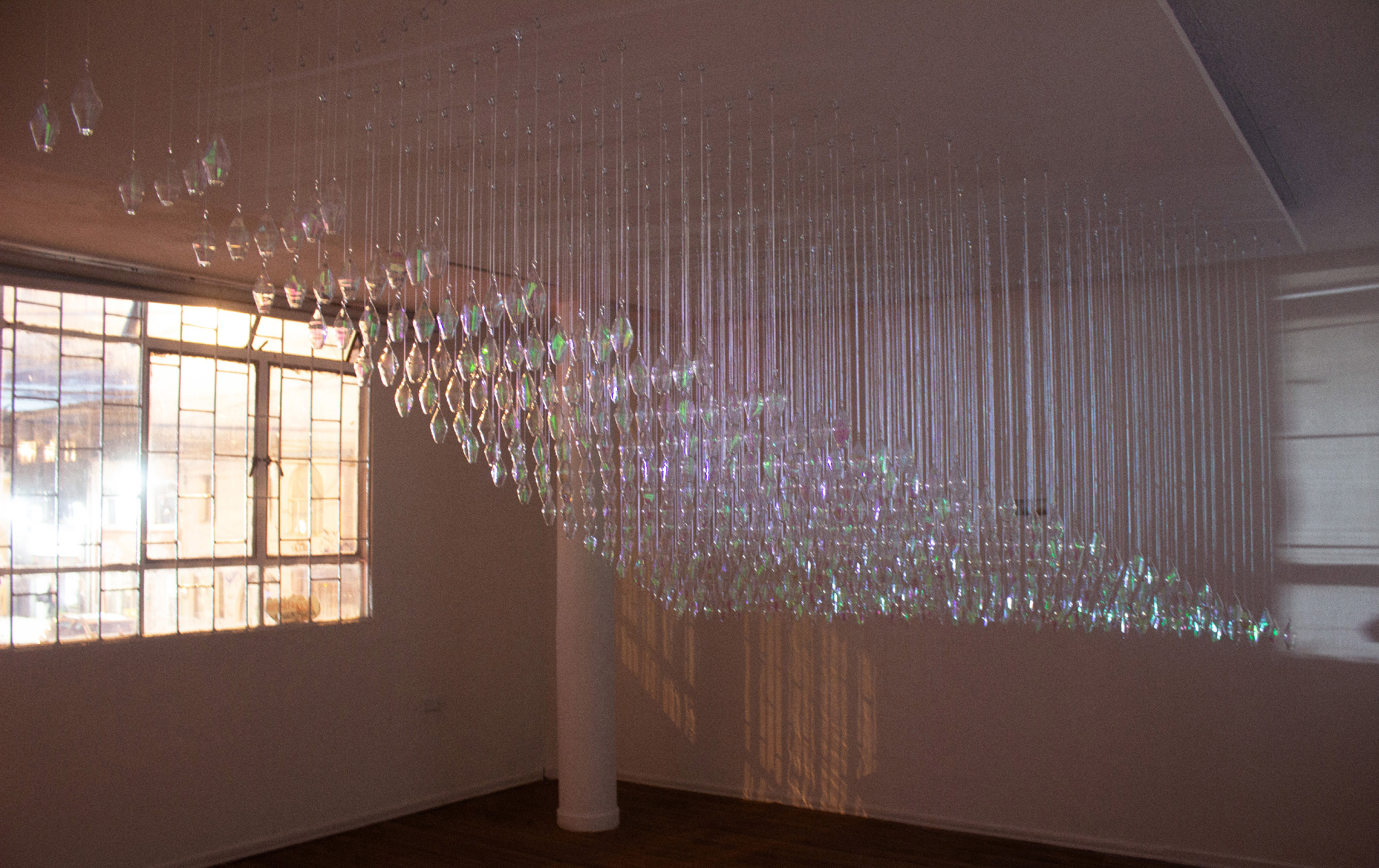 Sofía Paredes Vélez (b. 1994) is a woman interdisciplinary artist, born in Bogotá, Colombia. Through textile, glass, video and installation, her work explores narratives related to transitions (and the loss and ruptures that occur in these shifts) —while also focusing on the aftermath of change— and in the urges to rebuild.