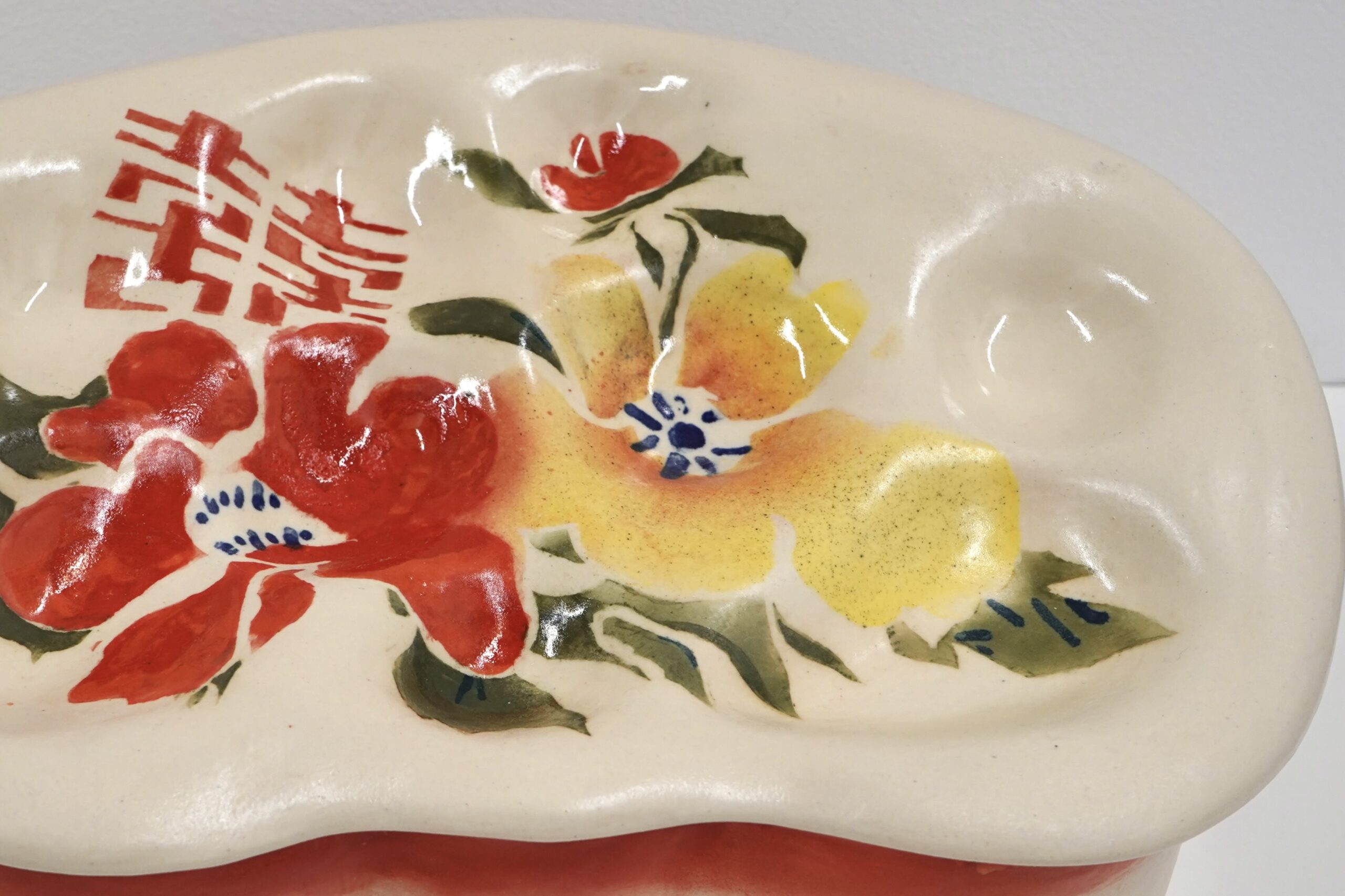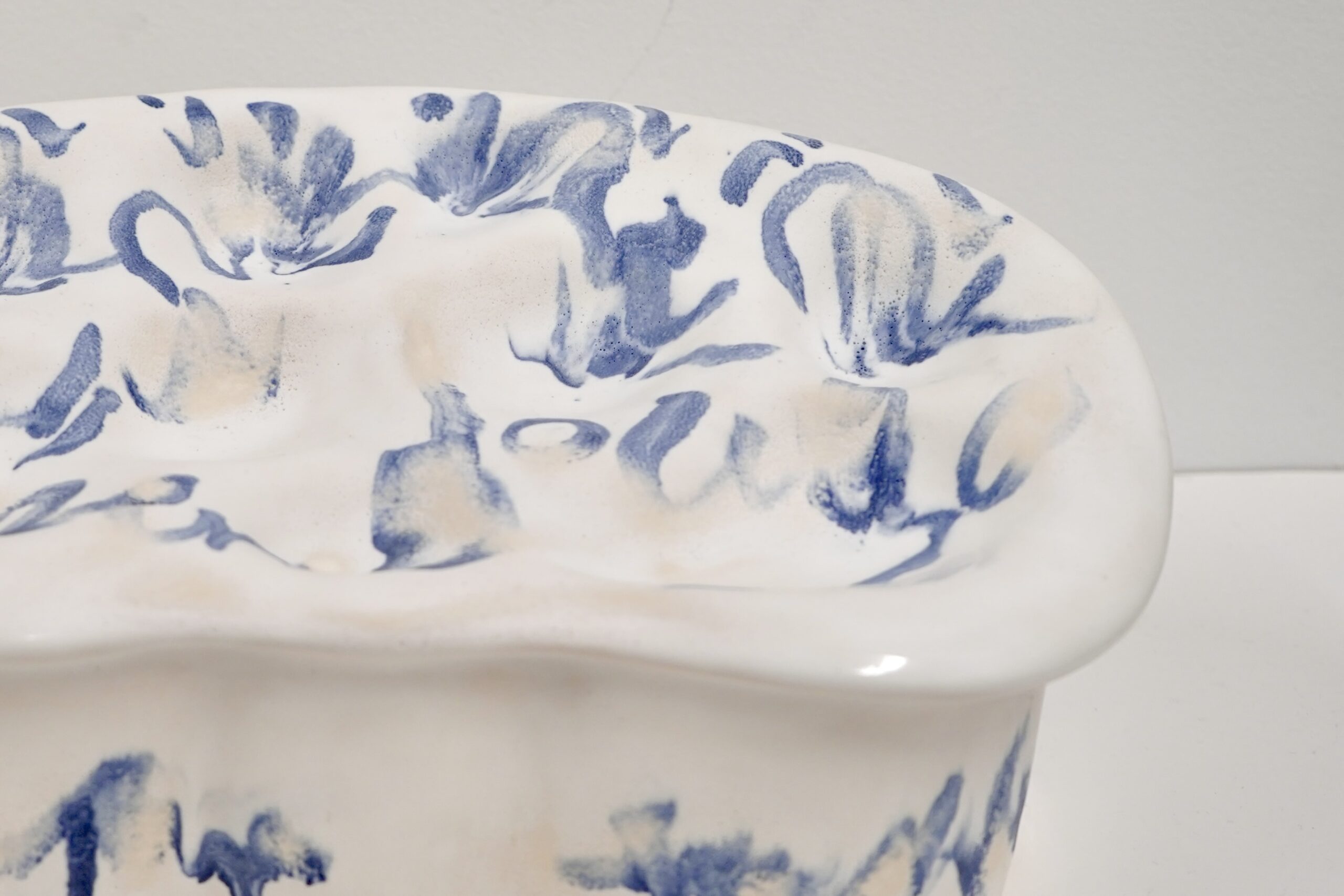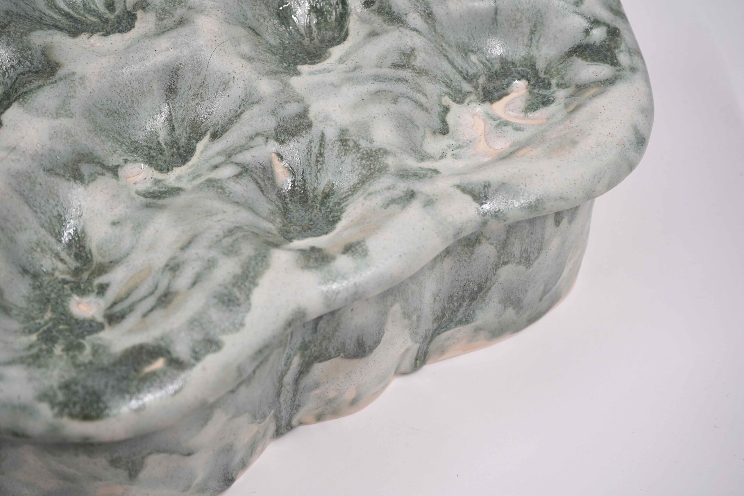 While trained in traditional printmaking, beyond images living off paper, she expands an understanding of forms into a practice with clay.